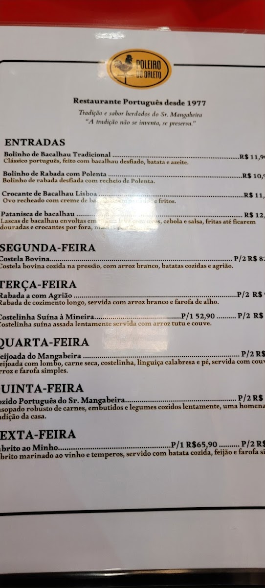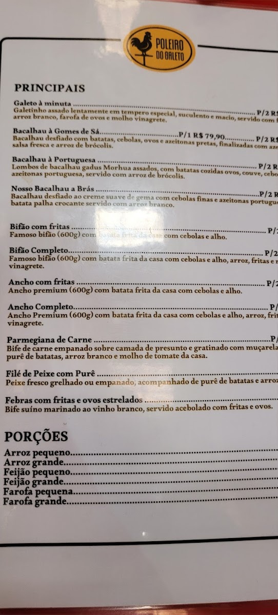 The menu at Poleiro Do Galeto offers a variety of traditional Brazilian dishes, each expertly crafted to satisfy diverse tastes. Their Galeto (Chicken) is the star of the show, with different preparations available for both lunch and dinner. The restaurant's Galeto no Espeto (grilled chicken) is perfectly seasoned and tender, served with sides like rice, beans, and fries. For a more filling option, the Frango à Parmegiana (chicken parmigiana) is a classic choice. Additionally, the menu includes feijoada, Brazil’s beloved black bean stew, a must-try for anyone looking to experience authentic Brazilian flavors. For lighter fare, salads and sandwiches are also offered, including the X-Burger, a delicious Brazilian take on the classic burger. The prices are reasonable for the quality of food, making it an excellent spot for both delivery through platforms like iFood and Rappi, and for in-person dining at their location at Cadeg, Benfica, Rio de Janeiro. Whether you're stopping by for a hearty lunch or a casual dinner, the menu at Poleiro Do Galeto provides a satisfying, flavorful experience for all.